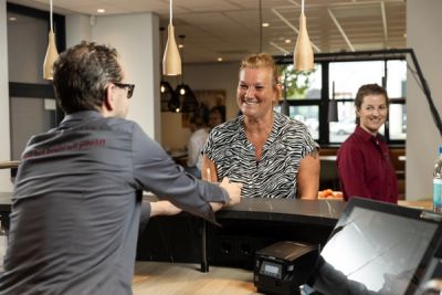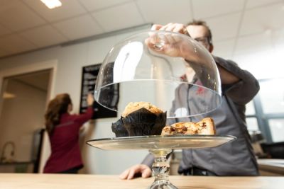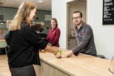 Je kunt bij ons werken in de bar in de centrale ontmoetingsruimte. Hier ontvang je gasten, zet je een heerlijk kopje koffie of serveer je soep aan medewerkers van Driestroom. Ook in de pantry's en vergaderzalen op de verschillende verdiepingen kun je werken.