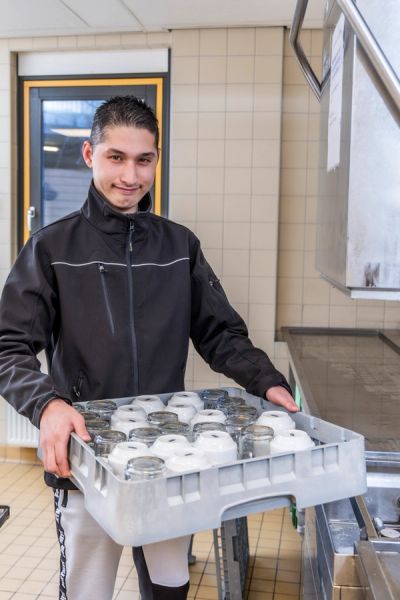 De werkzaamheden bij onze werkpost zijn divers. Van tafels dekken en maaltijden uitserveren tot bedden opmaken of het doen van de was. Je hebt tijdens je werk veel contact met bewoners. Ook breng je de bewoners bijvoorbeeld met de rolstoel van hun kamer naar de fysiotherapeut of ondersteun je bij een activiteit.