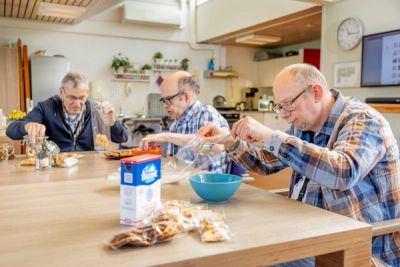 In onze bakkerij bakken we koekjes, cakes, brownies en andere lekkernijen. Je kunt hier appels schillen, beslag maken of cakes snijden. Liever creatief bezig? In ons atelier kun je jouw creativiteit inzetten om de mooiste kunstwerken te maken. Denk hierbij aan kaarten, verpakkingsmateriaal en schilderijen.
