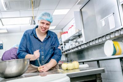 Elke week vind je ons bij Bakkerij Vonk om peperkoeken in te pakken, appels te schillen en appeltaarten te bakken. Bij crackerfabriek Qrackers pakken we crackers in en werken mee in de fabriek. We werken samen met meerdere ondernemers, zoals de supermarkt, groenteboer en een bedrijf voor relatiegeschenken.