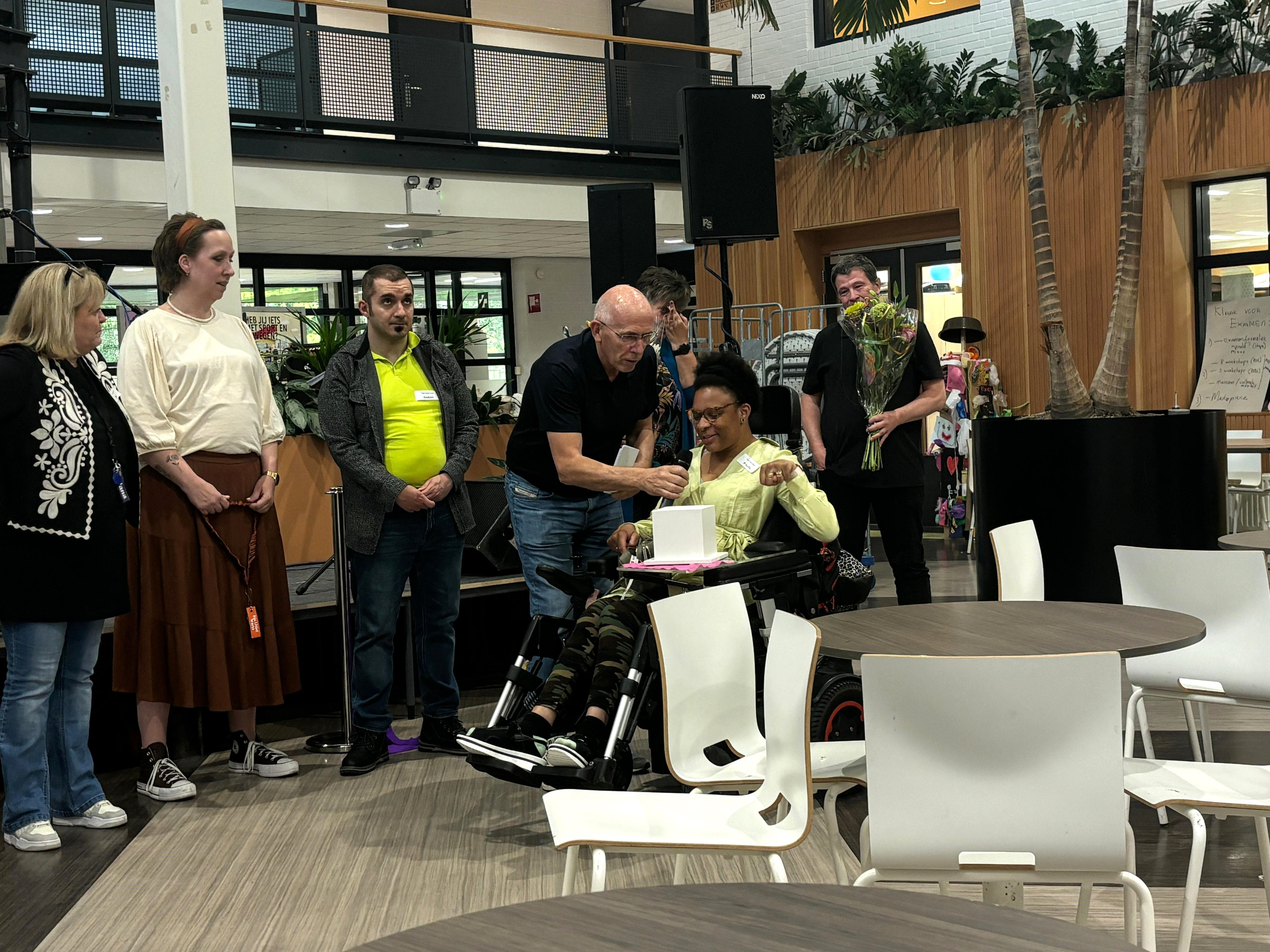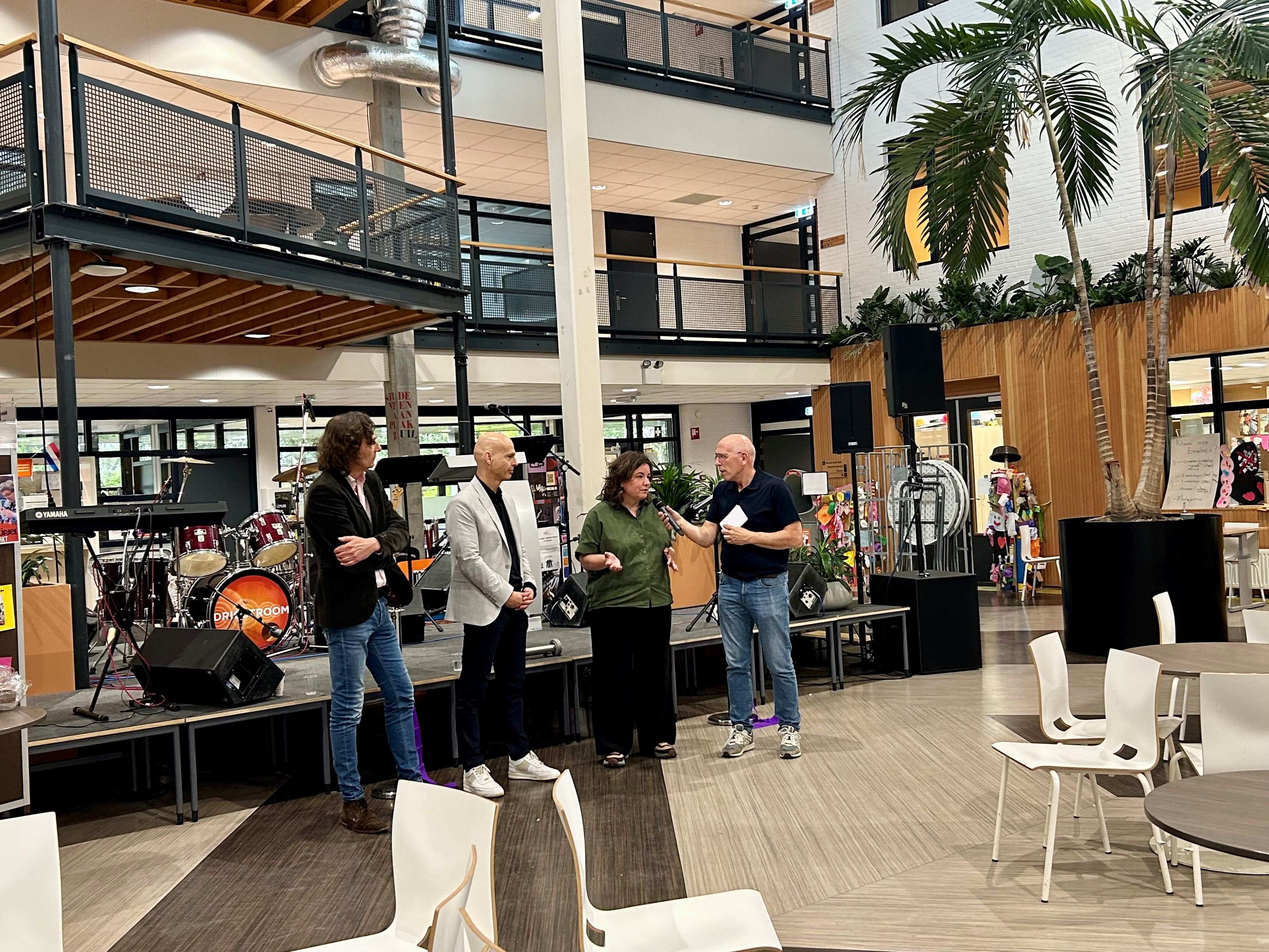 Driestroomband Jukebox trapte de feestelijke opening af. Met hun vrolijke klanken zorgden ze voor een warm en gezellig welkom. Rijn IJssel Werkt werd daarna officieel geopend met het doorknippen van een lintje door Alexander, assistent-medewerker bij Rijn IJssel Werkt. Vervolgens vertelden meerdere assistent-medewerkers over hun werk hier, bijvoorbeeld over wat ze geleerd hebben en hoe fijn deze werkplek is tussen de studenten. Ook de begeleiders kwamen aan het woord. Zij vertelden onder andere hoe mooi het is om te zien hoe de studenten en assistent-medewerkers met elkaar samen werken en van elkaar leren. In de zaal zaten familieleden van de assistent-medewerkers, studenten en medewerkers van Rijn IJssel en collega’s van Siza en Driestroom. Het slotwoord was aan de directeuren en managers van Rijn IJssel, Siza en Driestroom, waarna de opening muzikaal afgesloten werd door Driestroomband Jukebox.