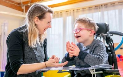 Midden in een woonwijk in Velp-Zuid ligt het eilandje ‘Hart voor Zorg’. Hierop is een multifunctioneel centrum gevestigd met verschillende voorzieningen waaronder Kindercentrum Dol~fijn. Begeleider Myrna Bosman werkt bij deze Driestroomlocatie en begeleidt samen met een collega zo’n acht kinderen met een ernstige meervoudige beperking (EMB), waaronder de 11-jarige Glenn.