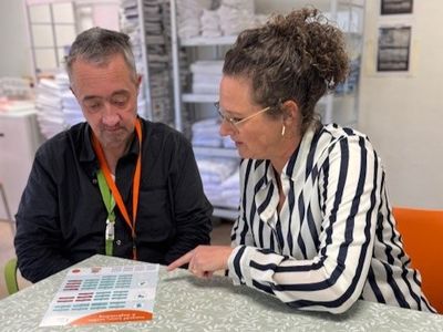 Bij Werkpost Drie Gasthuizen ontstaan dagelijks bijzondere momenten. De assistent-medewerkers ondersteunen namelijk niet alleen het zorgpersoneel van woonzorgcentrum Drie Gasthuizen, maar zorgen ook voor extra aandacht en warmte bij de bewoners. Tijdens de koffie-, thee- en soeprondes worden ze keer op keer ontvangen met een glimlach en krijgen ze regelmatig iets lekkers aangeboden door een bewoner. Onlangs werden ze zelfs liefdevol "Gouden Hartjes" genoemd – een prachtig compliment dat de waarde van hun werk onderstreept. Albertine: “Dankzij de samenwerking met Brasserie Angerstein, gevestigd in het gebouw van Drie Gasthuizen, kon een assistent-medewerker van Driestroom aan de slag in de spoelkeuken. Als blijk van waardering boden zijn collega’s van de brasserie hem een reiskostenvergoeding en werkschoenen aan. Bij Werkpost Drie Gasthuizen draait het niet alleen om werken, maar juist ook om gezien en gewaardeerd worden.”