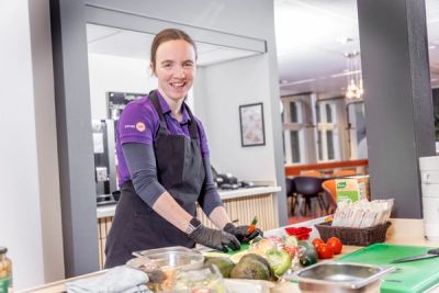 In de kantine van Omroep Gelderland vind je de basis van onze werkpost. Vanuit hier gaan we aan de slag in de kantine, maar ook in de rest van het pand. Elke werkdag maken we lunch voor de medewerkers van Omroep Gelderland. Meestal bestaat dit uit het maken van broodjes, salades en soep. Ook wassen we af, vullen