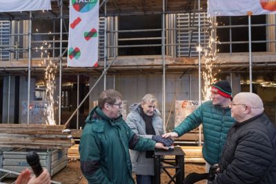 Op donderdag 29 januari vierden we samen met vier toekomstige bewoners en andere betrokkenen het hoogste punt van het nieuwbouwproject aan de Planetenstraat. We zijn trots op deze bijzondere mijlpaal.