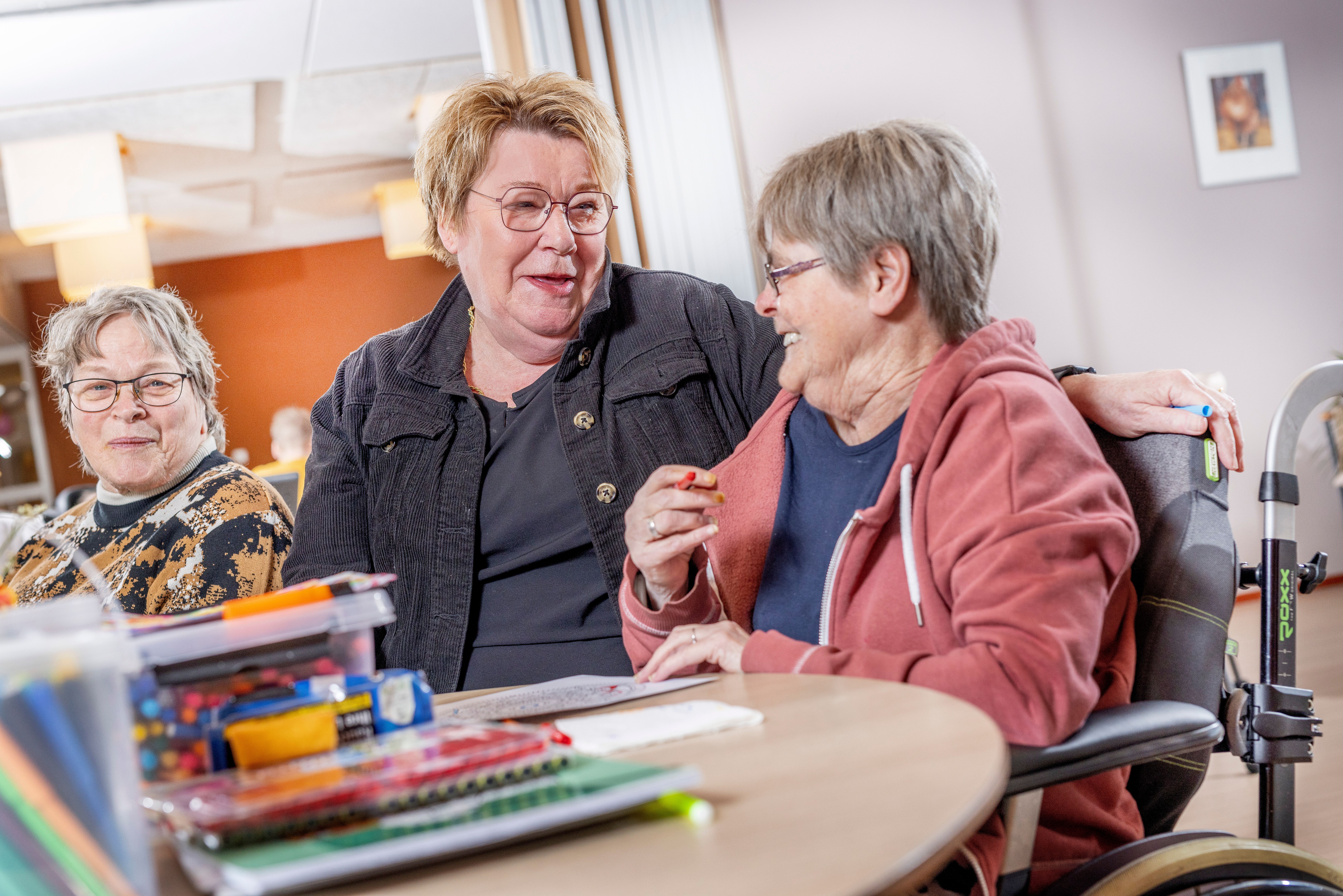 Na de geboorte van haar eerste kind deed Ciska een stapje terug, maar door het doen van vrijwilligerswerk bleef ze toch altijd betrokken bij dagcentrum Elsweide. Na een paar jaar ging ze weer volledig aan het werk. Ciska: “Ik kreeg een belletje van het hoofd van Elsweide, met de vraag of ik teamleider wilde worden op zijn locatie. Hij was getipt door een medewerker om mij eens te bellen.” Ook hier hoefde Ciska niet lang over na te denken. “Ik was heel blij om weer terug te gaan. Het heeft altijd goed gevoeld om te werken met de deelnemers en medewerkers. Het was alsof ik nooit was weggeweest.” Na een hbo-opleiding en verschillende trainingen, werkte Ciska nog als teamcoördinator voor wonen en als projectmanager voor de toen nieuwe locatie Elsterveld. Na de bouw van locatie Loovelden 2 en 3, is Ciska hier in 2012 aan de slag gegaan als teamleider. Dit is dan ook de functie die zij het langs heeft uitgevoerd. “Ik vind het nog steeds geweldig om te zien met hoeveel inzet het team werkt. Ze werken aan het geluk van onze bewoners en zetten alle mogelijkheden in werk om hen hun eigen regie te laten voeren. Dat maakt het werk zo interessant”, vertelt Ciska.